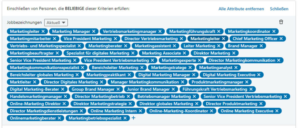 Bei LinkedIn kann man nicht so detailliert die Zielgruppe definieren, aber nach der Branche, Berufsbezeichnung und Unternehmensgröße gehen und dies wieder mit anderen Merkmalen, wie der Demografie kombinieren.